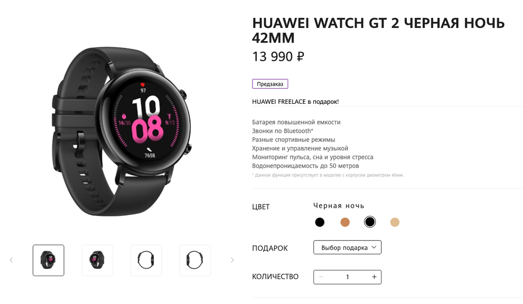 Ранее в России предлагались только Huawei Watch GT 2 с корпусом 46 мм по рекомендованной розничной цене от 14990 рублей, они имеют принципиальные внешние отличия от Huawei Watch GT 2 с корпусом 42 мм.