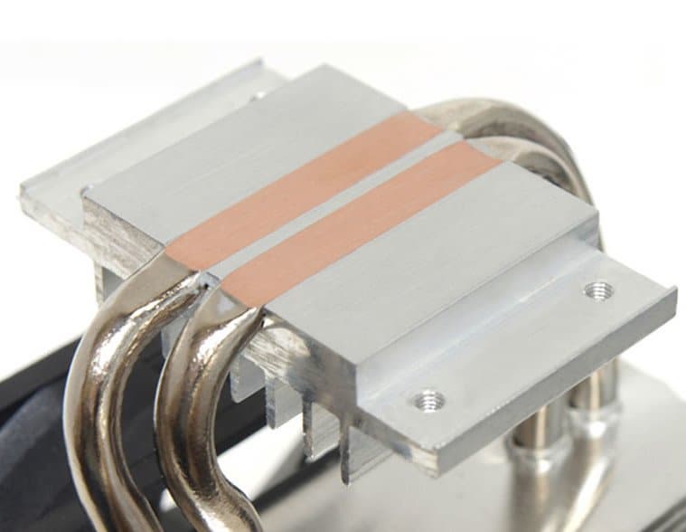 Конструкция систему охлаждения включает алюминиевое основание, через которое проходят две медные тепловые трубки диаметром 6 мм. Трубки непосредственно контактируют с процессором и переносят тепло в вертикальный блок алюминиевых пластин, ориентированных параллельно плоскости системной платы.