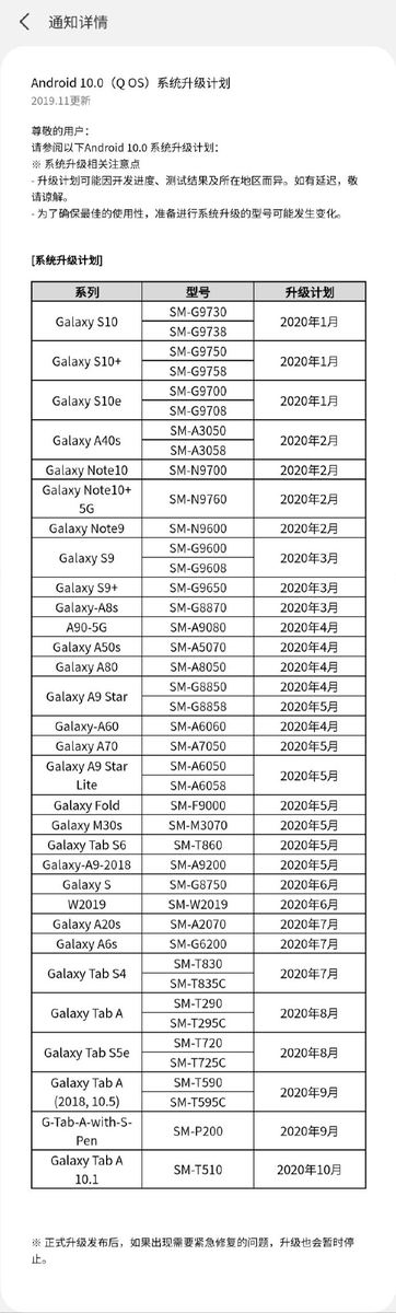 В июне Android 10 и One UI 2.0 получат Galaxy S и Galaxy W2019. В июле обновят Galaxy A20s, A6s и планшет Tab S4. В августе обновление получат планшеты Tab A и Tab S5e, в сентябре - Tab A 2018. Наконец, последний обновят Tab A 10.1.