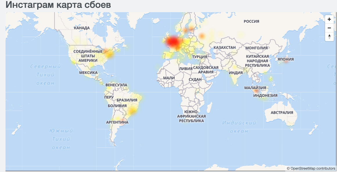 Ресурс DownDetector, который в реальном времени отображает ситуацию с доступностью во всем мире различных сайтов и сервисов, подтвердил наличие проблем во многих регионах. В основном они наблюдаются в Европе, но также встречаются в России, Индии, США, Латинской Америке.