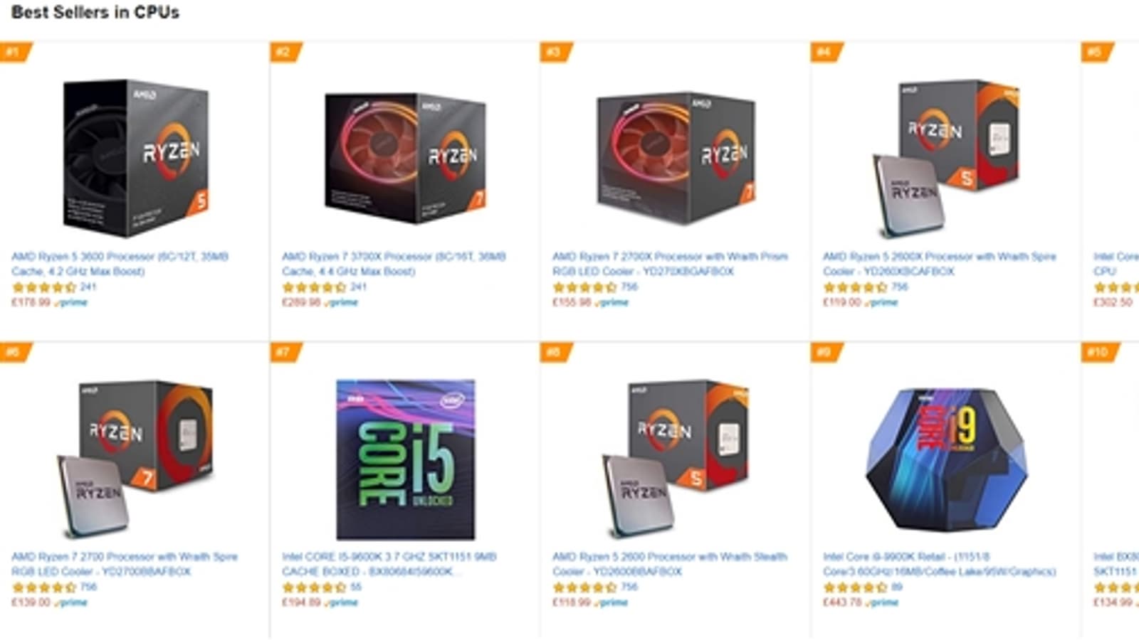 Вчера мы писали о том, что Топ-10 процессоров крупнейшей в США онлайновой платформы Amazon оккупирован процессорами AMD: восемь из десяти моделей перечня – представители «красного» лагеря. Как сообщается сейчас, аналогичная ситуация наблюдается в Великобритании и Германии.