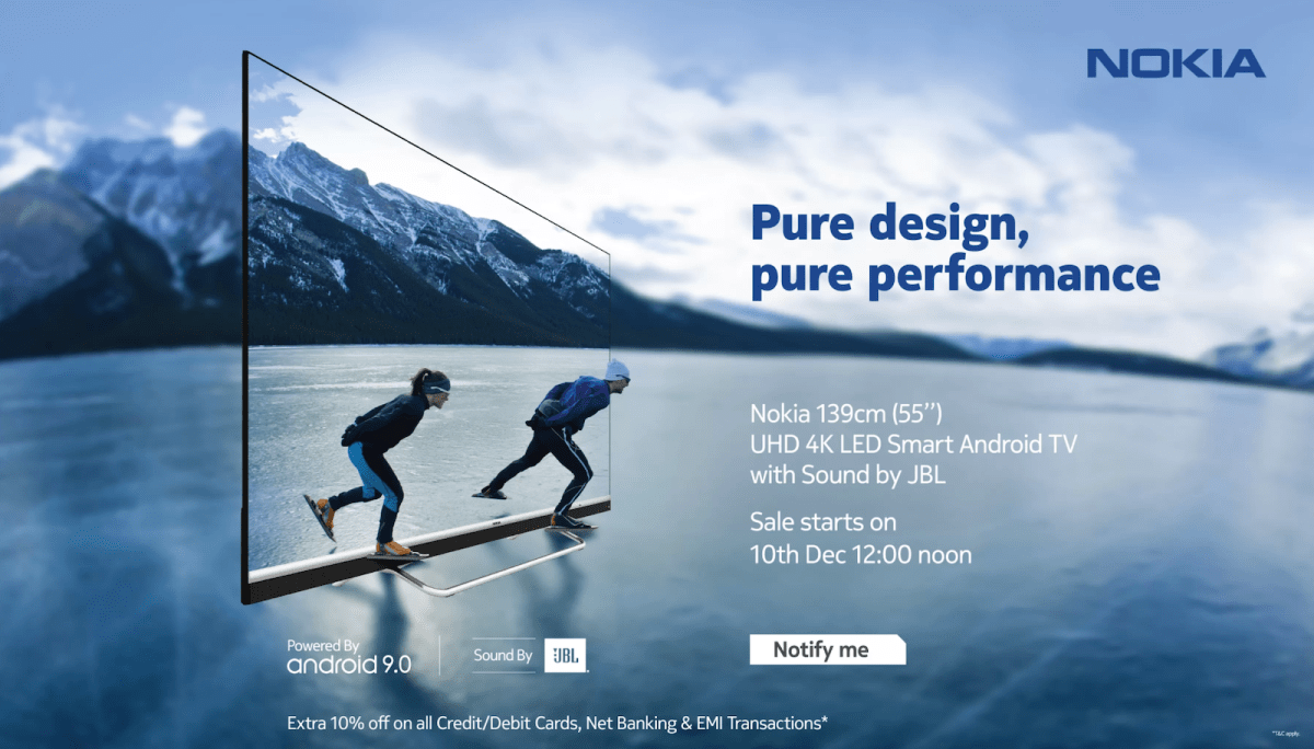 И вот сегодня этот телевизор был представлен. Новинка получила 55-дюймовую панель 4K UHD и стоимость около 590 долларов. Для сравнения, аналогичный по размерам телевизор Xiaomi в Индии стоит около 490 долларов, хотя есть модель Pro стоимостью 670 долларов. В общем, дорогим первый телевизор Nokia назвать нельзя.