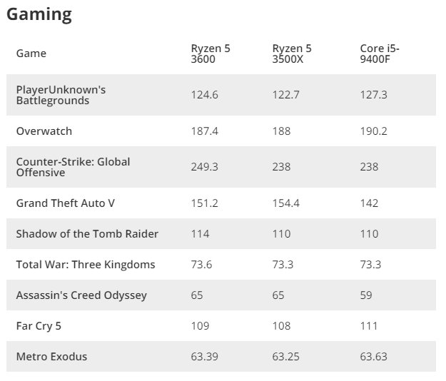 Что же касается адекватности сравнений Intel, к примеру, вот сравнение Ryzen 5 3500X с Core i5-9400F.