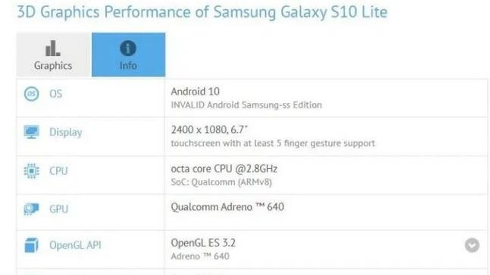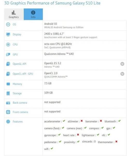 По слухам, Samsung Galaxy S10 Lite и Galaxy A91 – это одна и та же модель, но для разных регионов. Однако пока ни один из этих смартфонов не представлен официально, точно утверждать это нельзя, как и нельзя быть полностью уверенным в характеристиках. Поэтому предлагаем еще раз оценить их: бенчмарк GFXbench раскрыл основные спецификации Galaxy S10 Lite.