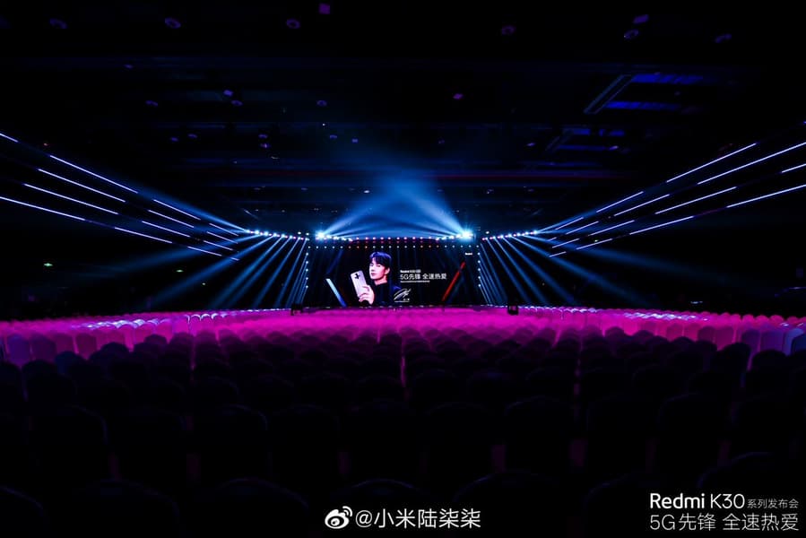 Китайские СМИ опубликовали фотографии перед анонсом смартфона, на которых нам показывают конференц-зал, в котором будет представлен Redmi K30, снаружи и изнутри.