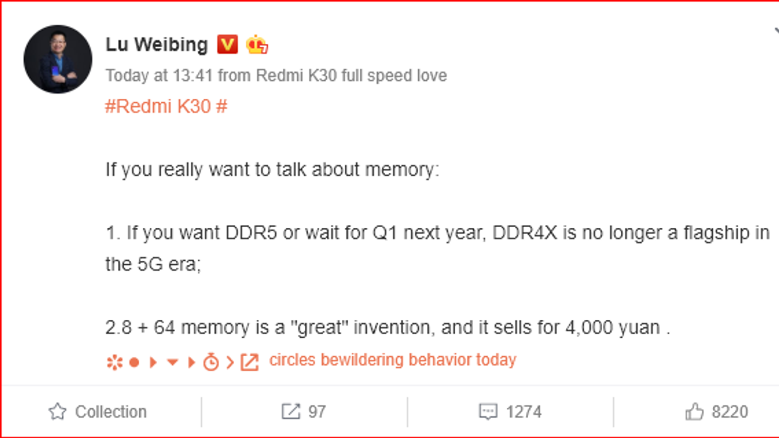 Вице-президент Xiaomi и глава бренда Redmi Лу Вейбинг (Lu Weibing) сообщил, что оперативную память LPDDR5 смартфоны компании получат в первом квартале 2020 года. Кроме того, по его словам, память нынешнего поколения (LPDDR4X) уже «не является флагманской в эпоху 5G».
