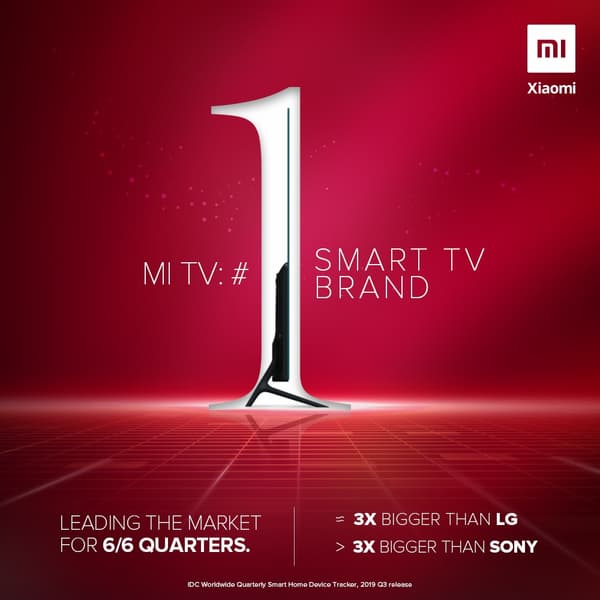 Компания Xiaomi похвасталась тем, что её телевизоры уже шесть кварталов подряд являются самыми продаваемыми в Индии. И не просто самыми продаваемыми — ближайший конкурент отстаёт более чем вдвое.