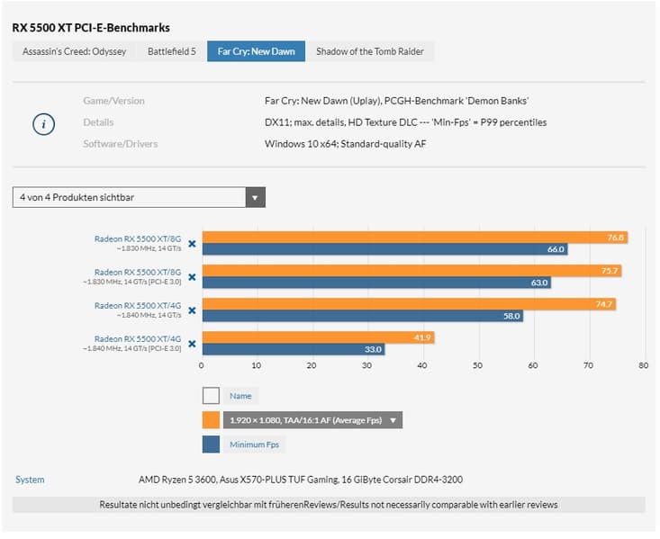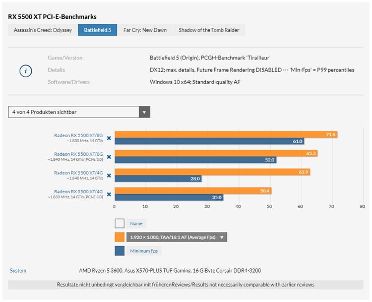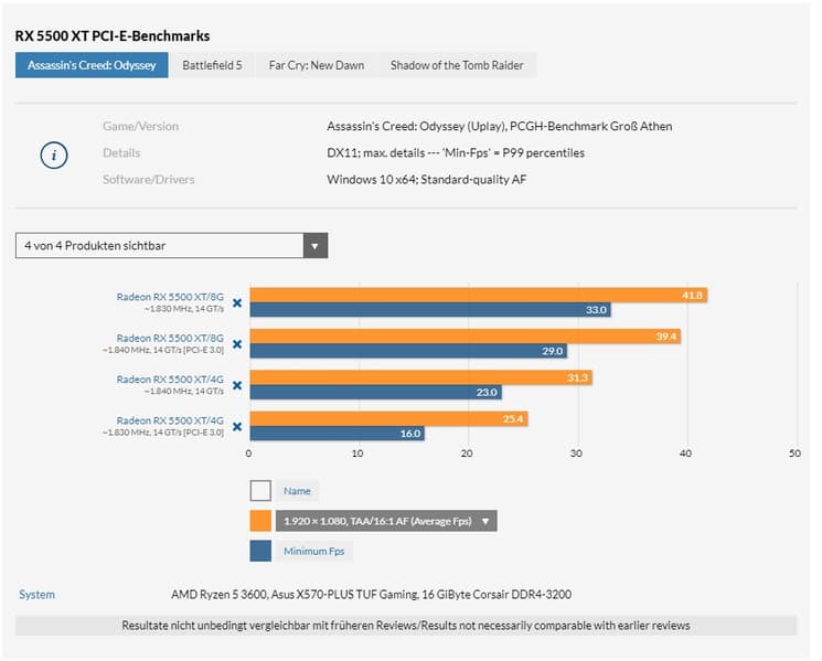 Ещё летом мы убедились в том, что этот интерфейс ожидаемо не даёт никакого преимущества Radeon RX 5700. Однако свежие тесты показывают, что Radeon RX 5500 XT по каким-то причинам такое преимущество получает.