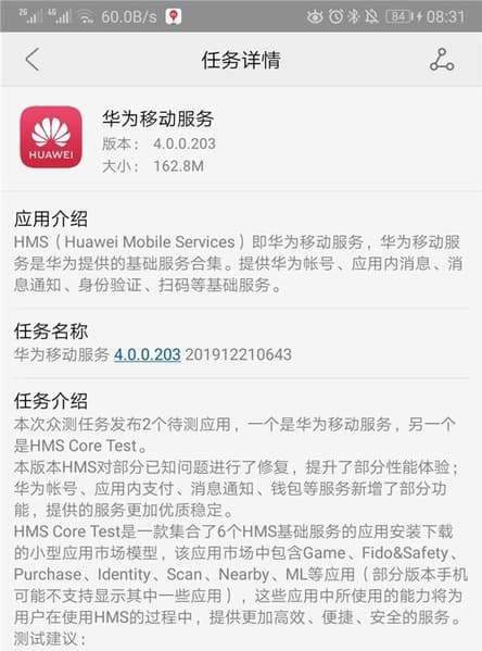 Надо отметить, с какой скоростью Huawei развивает HMS. О них было объявлено в середине сентября, а уже в конце декабря запущено публичное тестирование! Причем речь идет не о рядовых приложениях, а о ключевых компонентах оболочки. В рамках тестовой программы, как сообщают пользователи, проходят два приложения: собственно HMS (на него завязан аккаунт пользователя, системы оплаты и кошелек, уведомления о сообщениях и т.д.) и HMS Core Test (как составная часть HMS он обеспечивает доступ к мини-приложениям, отвечающим за безопасность, идентификацию, покупки, биометрию). В общем, по функциональности HMS должны полностью повторить GMS.