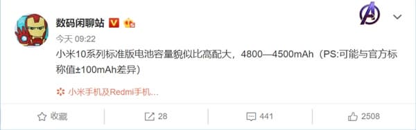 Несколько дней назад в Сети появились слухи о том, что Xiaomi Mi 10 получит аккумулятор большой емкости, не менее 4500 мА·ч. Сегодня эти данные прокомментировал в социальной сети Weibo директор по новой продукции Xiaomi Ван Тенг Томас (Wang Teng Thomas).