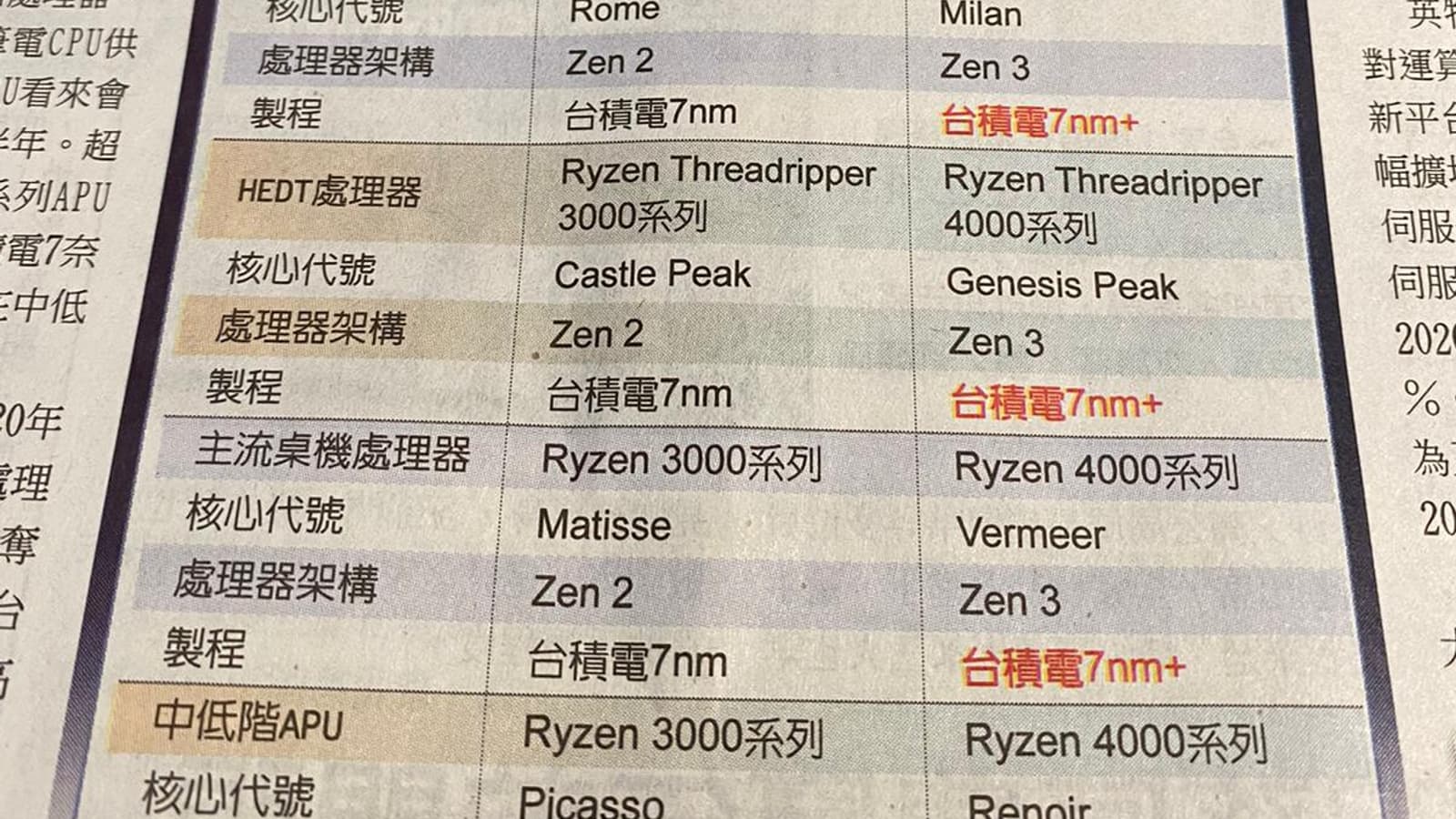 Со ссылкой на известное тайваньское издание источник сообщил, что компания AMD официально представит микроархитектуру следующего поколения Zen 3 на выставке CES 2020. Доклад генерального директора компании будет посвящен трем ключевым продуктам клиентского сегмента в новом семействе процессоров Ryzen 4-го поколения и семейству процессоров EPYC 3-го поколения на многокристальных модулях (MCM) Milan, которые сменят MCM Rome. AMD собирается представить HEDT-версию Milan в семействе Ryzen Threadripper 4-го поколения под кодовым названием Genesis Peak.