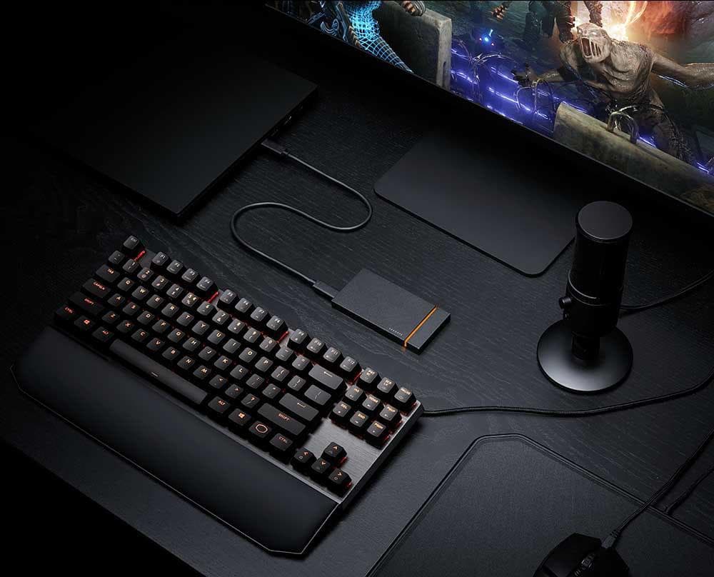 Портативный накопитель FireCuda Gaming SSD рассчитан на использование с док-станцией Seagate FireCuda Gaming Dock. В его корпусе находится накопитель Seagate FireCuda NVMe 510 типоразмера M.2, оснащенный интерфейсом PCIe. Использование для внешнего подключения интерфейса USB 3.2 Gen 2×2 с пропускной способностью 20 Гбит/с позволяет получить скорость чтения до 2000 МБ/с.