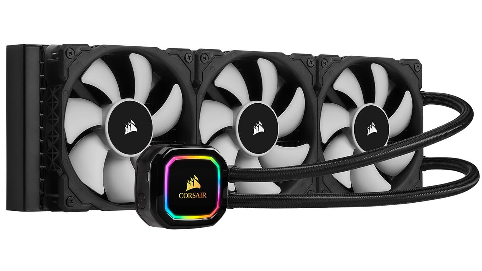 На радиаторах систем жидкостного охлаждения iCUE PRO XT закреплены вентиляторы серии Corsair ML, скорость вращения которых регулируется с помощью ШИМ. В случае вентиляторов типоразмера 120 мм максимальная скорость составляет 2400 об/мин, в случае вентиляторов типоразмера 140 мм — 2000 об/мин. Наиболее производительной является модель H150i RGB PRO XT с тремя вентиляторами, которая подходит даже для самых мощных процессоров.