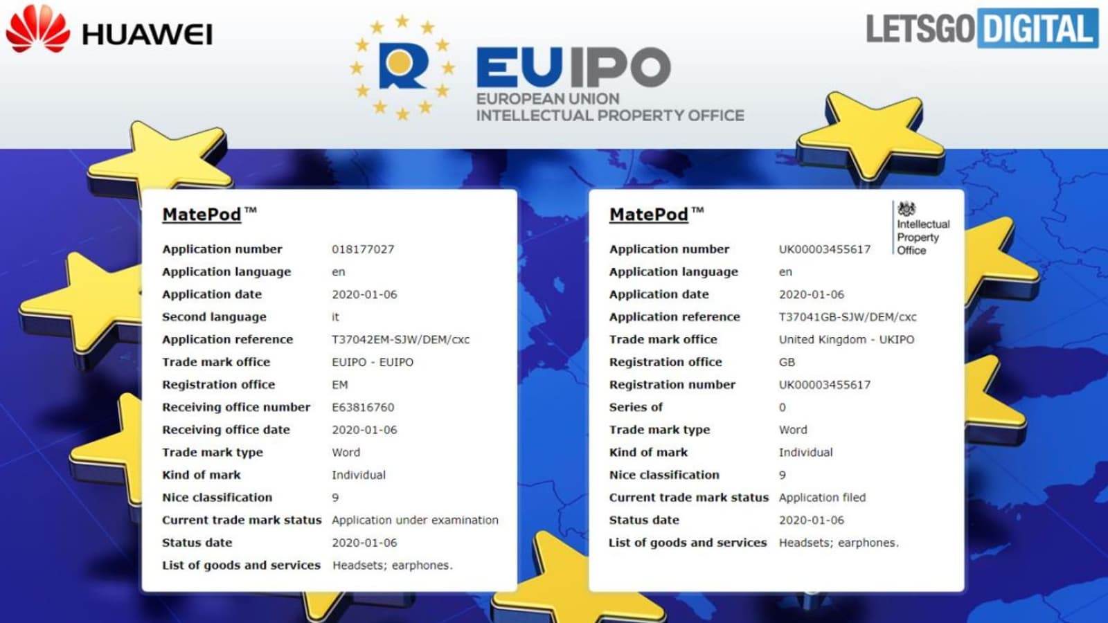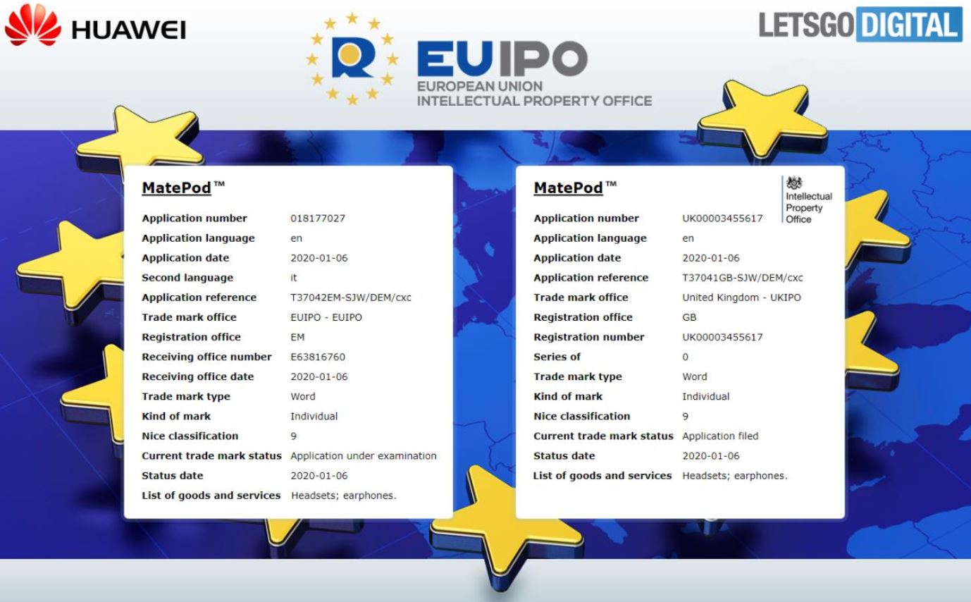 Беспроводные наушники Apple AirPods стали законодателем моды в рыночной нише гарнитур TWS, и нет ничего удивительного в том, что каждому производителю подобных устройств хочется отщипнуть свою долю пирога, приносящего миллионы (а в случае с Apple — миллиарды) долларов. Вот и Huawei готовит свое секретное оружие в конкурентной борьбе с AirPods Pro. Новинка называется MatePod — компания уже зарегистрировала соответствующее обозначение в европейском патентном бюро (EUIPO).
