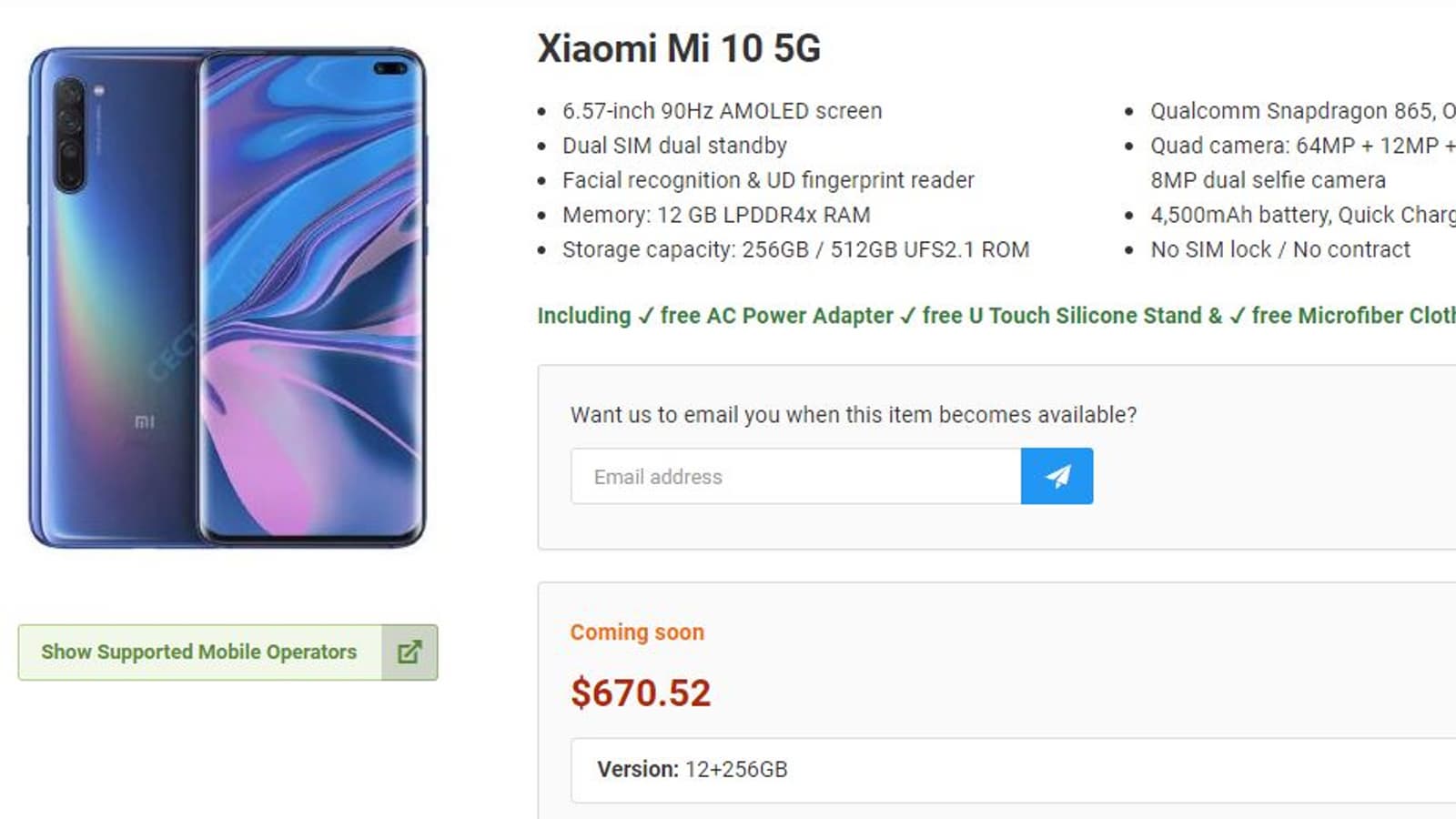 Интересно, что и стоимость Mi 10 5G уже рассекречена: $670 за версию с 256 ГБ флэш-памяти. Это примерно в два раза больше того, что просят за Redmi K30 5G с 8 ГБ ОЗУ и 128 ГБ флэш-памяти.