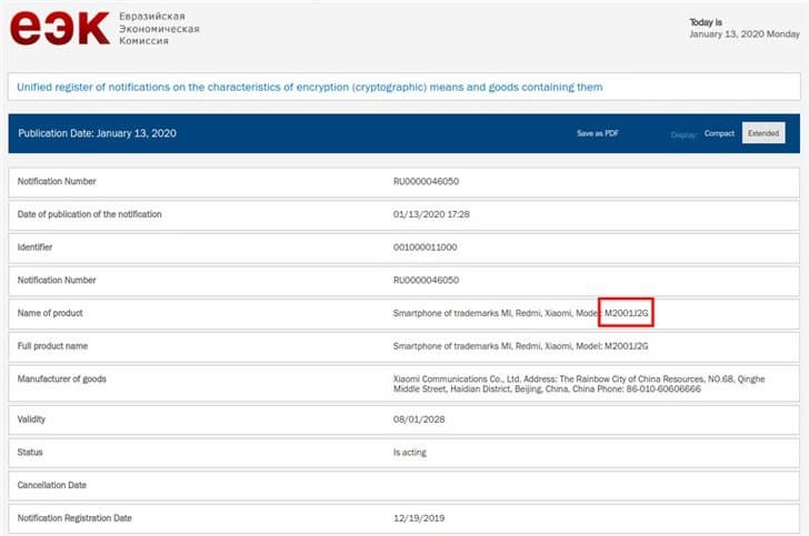 В ней обнаружились две новые модели Xiaomi — M2001J2G и M2003J6A2G. Первый — это как раз Mi 10. Китайская его версия сертифицирована местным регулятором под обозначением M2001J2E. О второй модели сложно сказать что-то определенное. Возможно, это Redmi 9, Redmi 9 Pro или, например, Redmi K30 Pro. Премьера всех этих моделей ожидается после Mi 10.