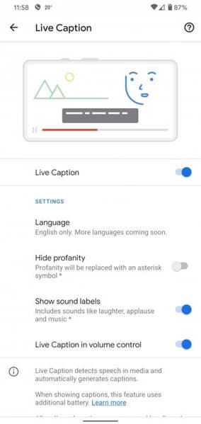 В смартфонах Google Pixel 4 и Pixel 4 XL дебютировала функция Live Caption, которая, используя обучаемую систему искусственного интеллекта, позволяет преобразовывать речь в субтитры в любом приложении или видеоролике.