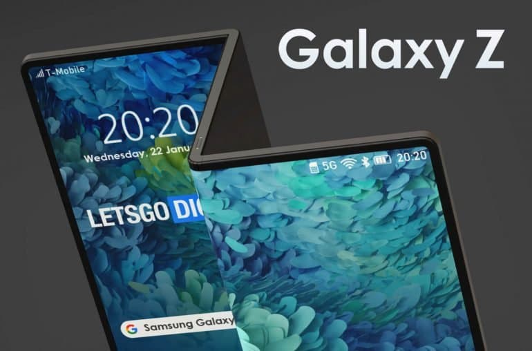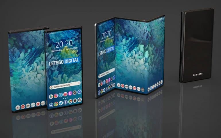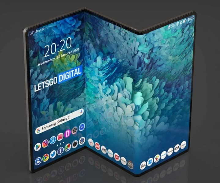 На днях в сети появилась фото с тизерным изображением нового смартфона Samsung Galaxy Z, который может складываться втрое.