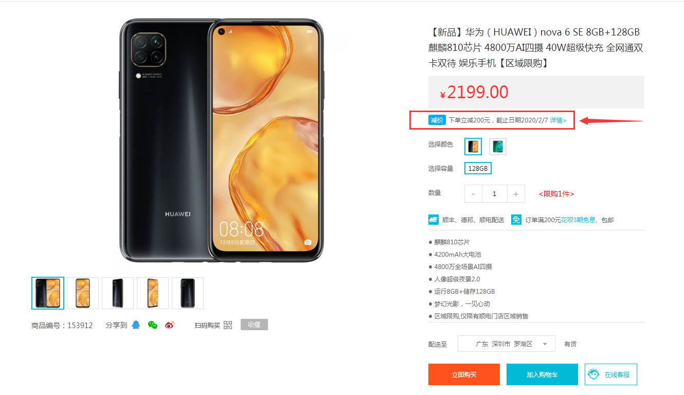 На данный момент в Китае Huawei Nova 6 SE с 8 ГБ оперативной памяти и 128 ГБ встроенной флэш-памяти можно купить за 289 долларов. Для сравнения, на момент запуска продаж в конце декабря он предлагался за 315 долларов.