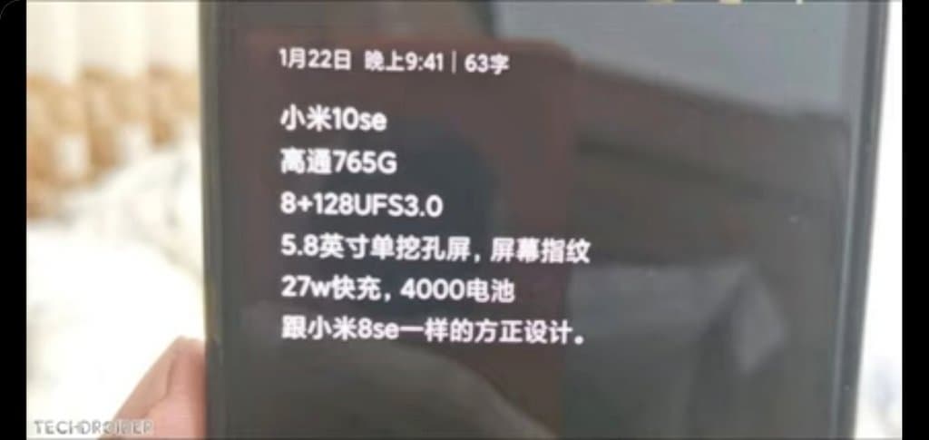 Итак, по данным источника, Xiaomi Mi 10 SE получит 5,8-дюймовый экран с врезанной фронтальной камерой и сканером отпечатков пальцев под дисплеем, однокристальную систему Qualcomm Snapdragon 765G, 8 ГБ оперативной памяти и 128 ГБ встроенной флэш-памяти UFS 3.0, а также аккумулятор ёмкостью 4000 мА·ч с быстрой зарядкой мощностью 27 Вт.