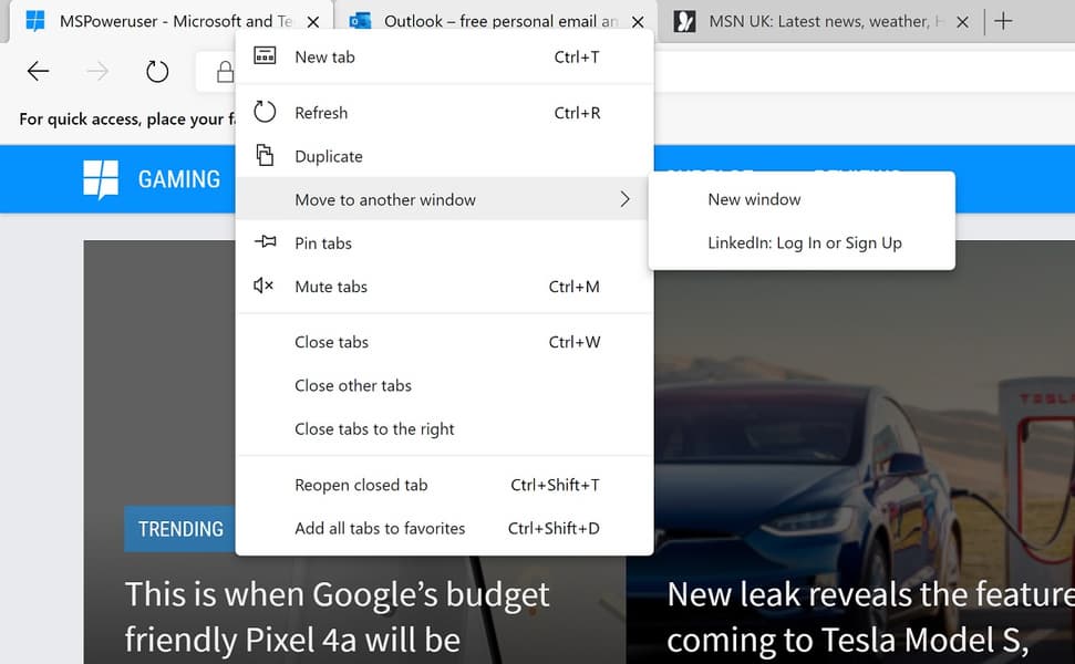 Пользователь может легко переместить вкладку или несколько вкладок в другое окно браузера через контекстное меню. Пока перемещение нескольких вкладок недоступно даже для ранних тестовых сборок Chrome Canary, однако патч можно найти в Chromium Gerrit.