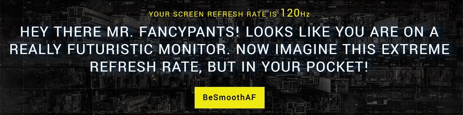 Одновременно с этим анонсом был запущен сайт smoothaf.co.in, который автоматически определяет частоту обновления изображения вашего мобильного устройства. При обнаружении частоты 60 Гц появляется стебный вопрос о том, каково это — пользоваться смартфоном с экраном, в котором используется технология 20-летней давности.