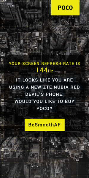 Удивительным образом изменился тон, в котором дается комментарий при обнаружении 144-герцевого экрана: «Похоже, вы используете новый смартфон ZTE Nubia Red Devil. Не хотите купить Poco?».