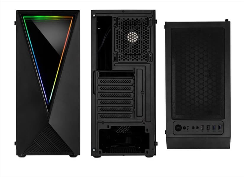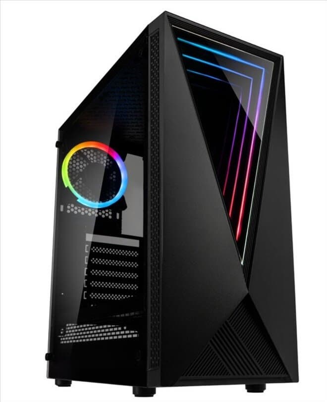 Показанный на иллюстрациях корпус представила компания Kolink. Он называется Void и обращает на себя внимание оформлением передней панели. Благодаря эффекту бесконечного зеркала и RGB-подсветке панель выглядит очень привлекательно.