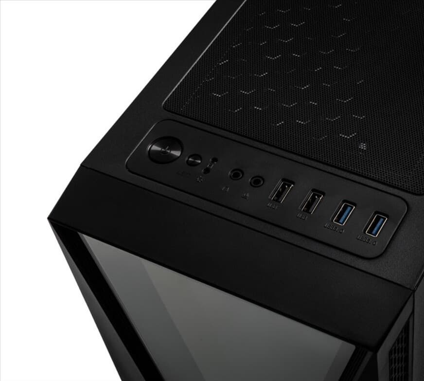 Что касается вентиляторов, в корпусе можно установить до пяти 120-миллиметрвых вентиляторов: два сверху, один сзади (он установлен штатно) и два спереди. В качестве альтернативы на передней стенке можно закрепить 240-миллиметровый радиатор СЖО. Боковая стенка изготовлена из закаленного стекла. На панели ввода-вывода есть два разъема портов USB 2.0 и два разъема портов USB 3.0.