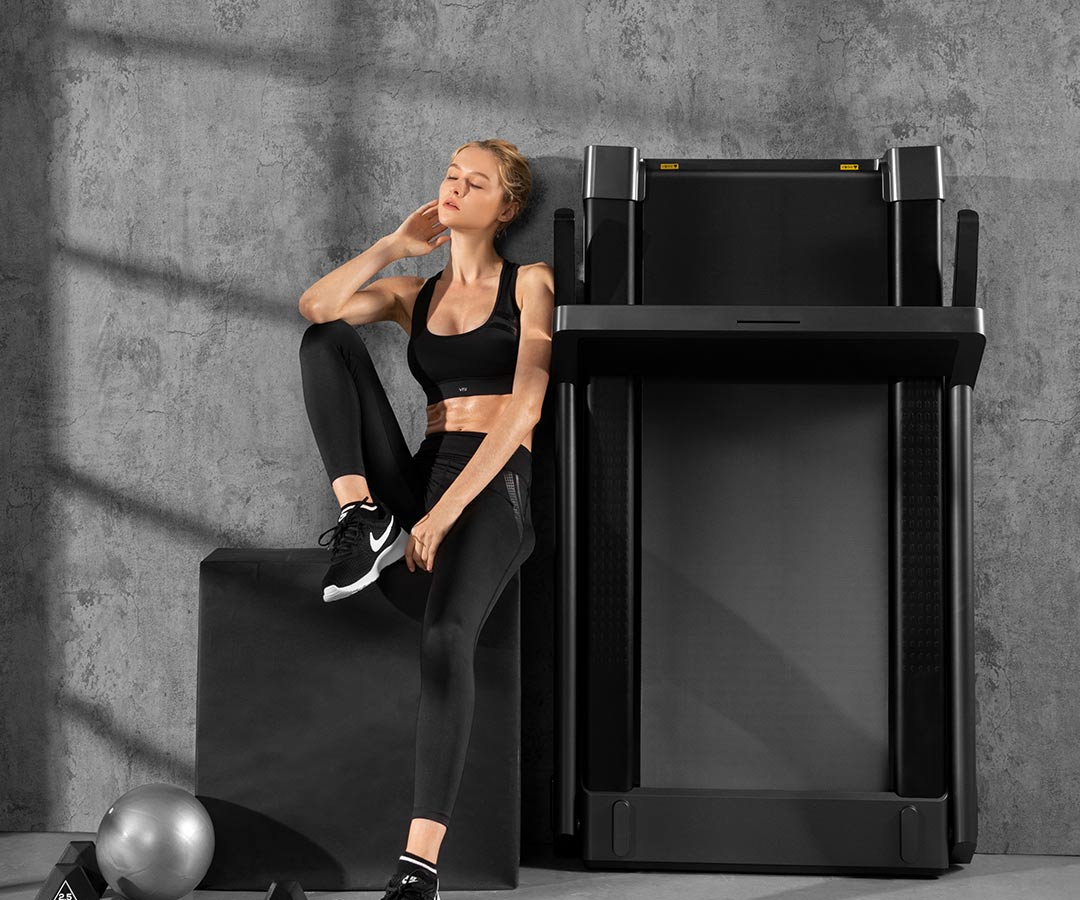 Как и следует из названия, беговая дорожка Kingsmith Smart Foldable Treadmill имеет складную конструкцию. Xiaomi всегда обращает внимание на портативность своих товаров, так квартиры в Китае зачастую являются небольшими. В сложенном виде тренажер можно ставить у стены или задвинуть под кровать.