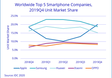 По подсчетам IDC, Apple занимает первое место на рынке смартфонов по итогам квартала