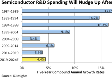 IC Insights прогнозирует увеличение скорости роста расходов на НИОКР в полупроводниковой отрасли