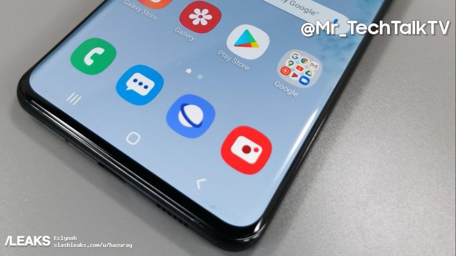 Раньше живые фото показывали либо макеты, либо часть задней панели с камерой Samsung Galaxy S20 Ultra. Однако теперь нам предоставилась возможность полюбоваться на смартфон спереди и в рабочем режиме.