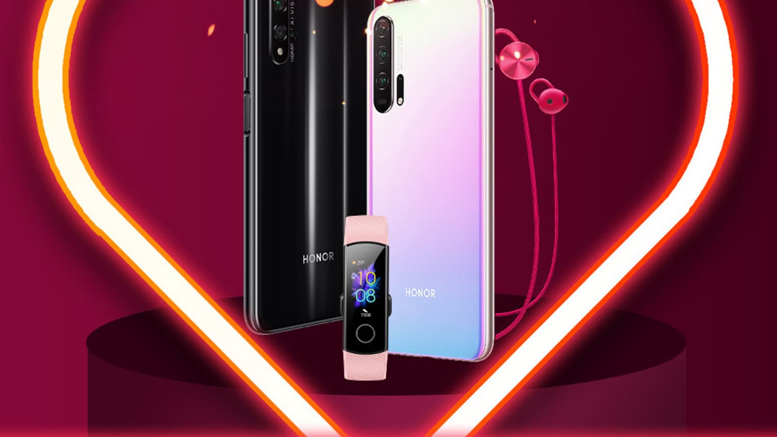 При покупке флагманского смартфона Honor 20 Pro (обзор) пользователи получают подарок на выбор: умный браслет Honor Band 5 или наушники Honor AM61, а при добавлении продукта в корзину – скидку 8000 рублей.