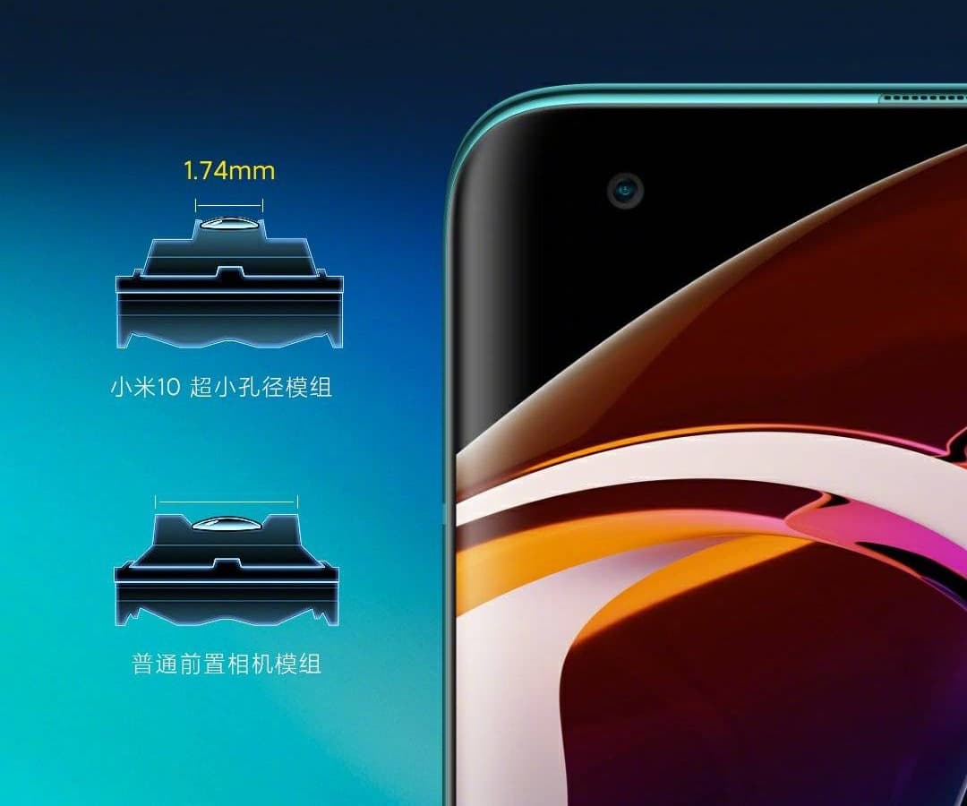 Ранее Xiaomi уже говорила о том, что вырез в экране Xiaomi Mi 10 под фронтальную камеру будет небольшим. Следующий постер подтверждает, что диаметр отверстия под селфи-камеру в Xiaomi Mi 10 составляет всего 1,74 мм. Это примерно вдвое меньше, чем диаметр врезанной в экран фронтальной камеры большинства смартфонов с подобной конструкцией.