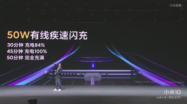 Также в Mi 10 Pro установлены более крупные стереодинамики, аккумулятор на 4500 мА·ч с поддержкой зарядки мощностью 50 Вт. Полный заряд достигается за 50 минут. В комплекте при этом предлагается зарядка мощностью 65 Вт, который можно заряжать ноутбуки.