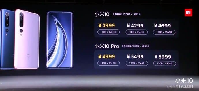 Xiaomi Mi 10 Pro предлагается за 716 долларов за версию с 8 ГБ оперативной памяти и 256 ГБ встроенной флэш-памяти, 787 долларов за 12 ГБ ОЗУ и 256 ГБ флэш-памяти, 859 долларов за 12 ГБ ОЗУ и 512 ГБ флэш-памяти. Продажи стартуют 18 февраля.