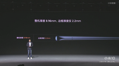 Толщина Xiaomi Mi 10 составляет 8,96 мм. Смартфон получил аккумулятор ёмкостью 4780 мА·ч и поддержку быстрой зарядки мощностью 30 Вт.