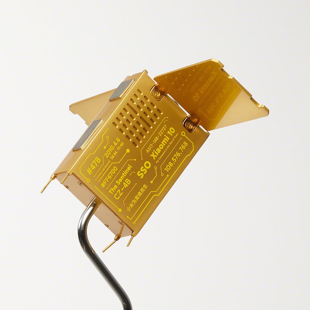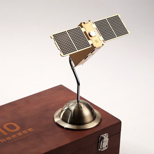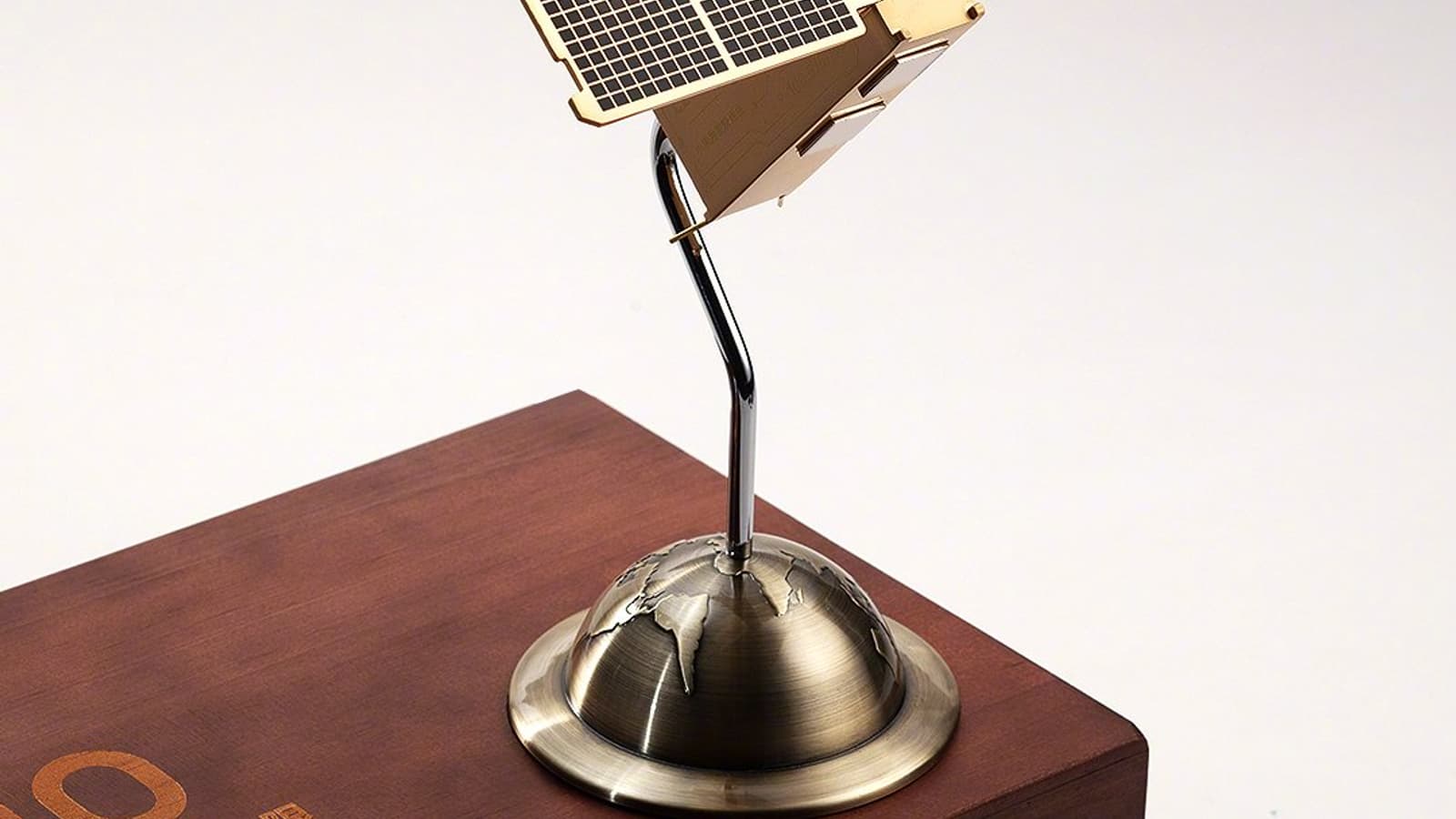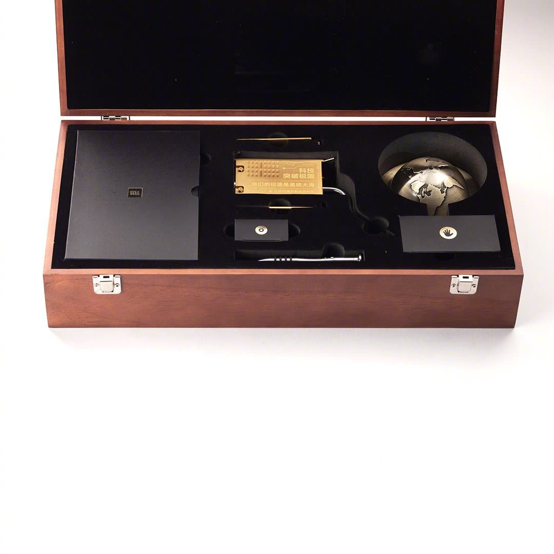 Приглашение поставлялось в дорогой деревянной упаковке, внутри которого находились VIP-пропуск на мероприятие, ручка и необычная фигурка, изображающая что-то вроде спутника с солнечными панелями, парящего высоко над нашей планетой.