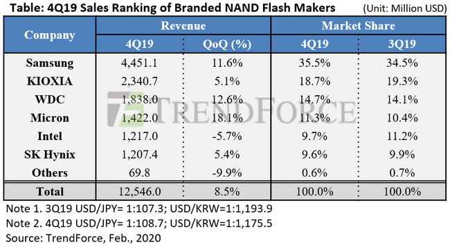В текущем квартале вспышка коронавируса COVID-19 может оказать влияние на цепочку поставок бытовой электроники, включая смартфоны и ноутбуки. Поэтому аналитики прогнозируют, что отгрузка (в терминах информационного объема) останется на прежнем уровне или даже незначительно уменьшится. Снижение может быть компенсировано увеличением контрактных цен, поэтому ожидается, что выручка от продажи флеш-памяти NAND сохранится на уровне прошлого квартала.