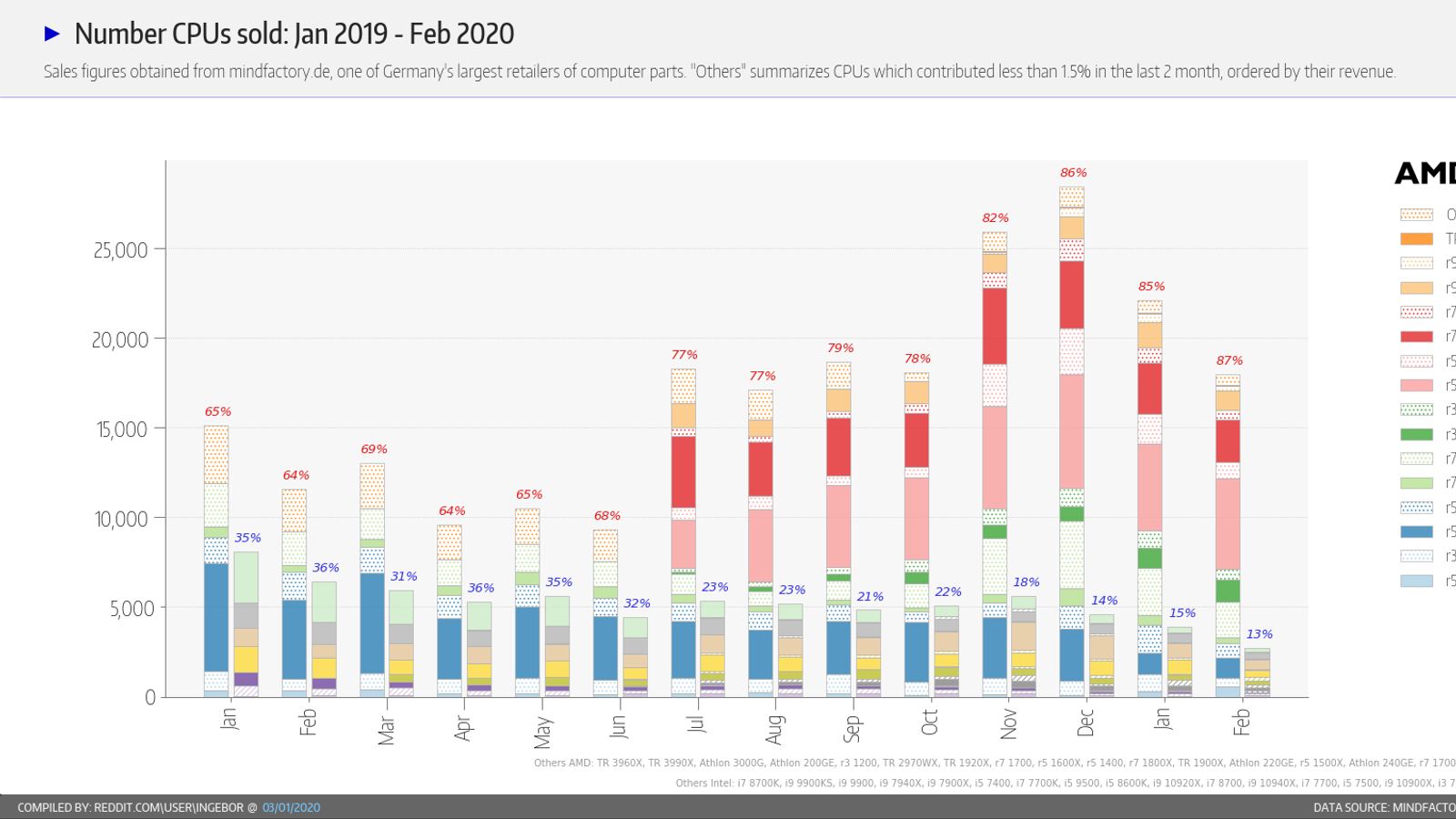 Февраль закончился, а это значит, что пришло время знакомиться с очередной порцией статистики крупного немецкого магазина Mindfactory и соотносить собственные предположения и прогнозы с реальностью.