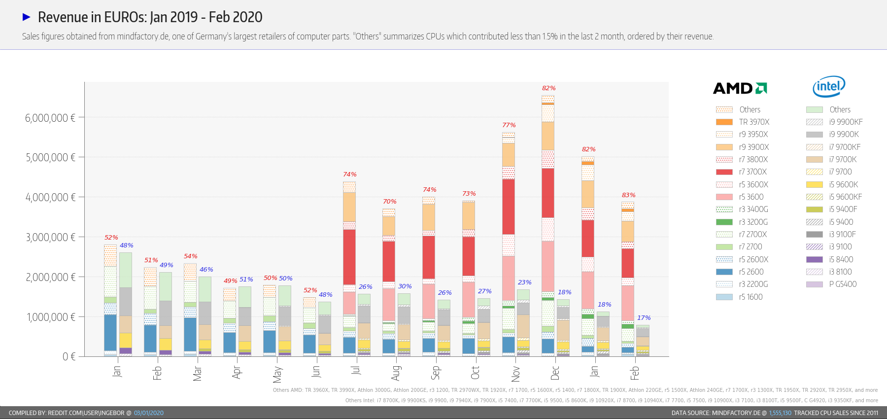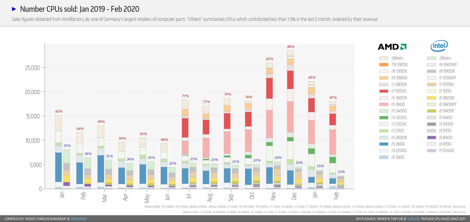 Февраль закончился, а это значит, что пришло время знакомиться с очередной порцией статистики крупного немецкого магазина Mindfactory и соотносить собственные предположения и прогнозы с реальностью.