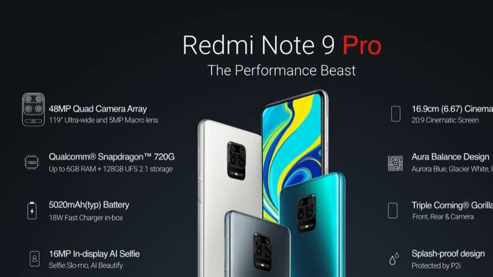 На этом отличия в плане характеристик заканчиваются, то есть Redmi Note 9 Pro тоже получил однокристальную систему Qualcomm Snapdragon 720, экран диагональю 6,67 дюйма, покрытие Corning Gorilla Glass 5 и аккумулятор емкостью 5020 мА•ч. Оба смартфона имеют защиту от брызг.