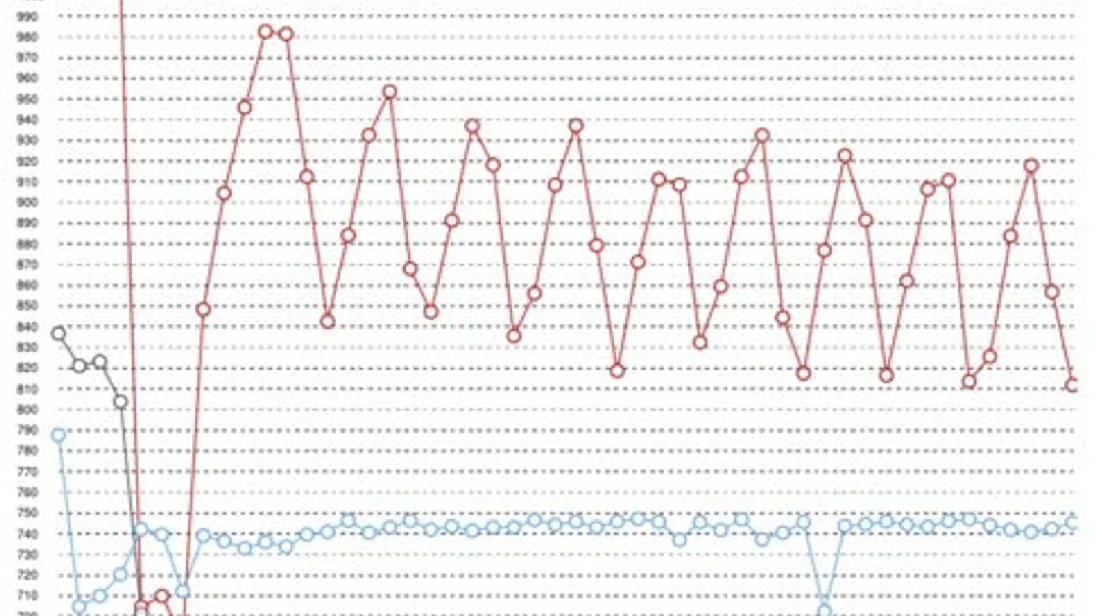 На графике ниже отображены результаты тестирования в многопоточном режиме и их изменения с каждым новым циклом.