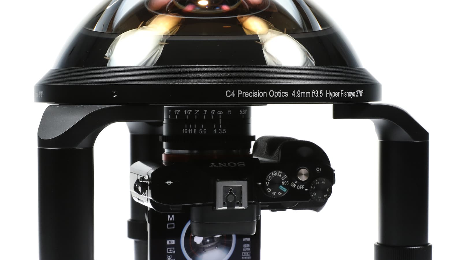 Объектив 4.9mm F3.5 Hyper Fisheye, получил прозвище The Light Bender, что можно перевести как «светозагибатель». Он оснащен креплением Sony E и обеспечивает угол поля зрения 270°, то есть позволяет запечатлеть на снимках даже область за фокальной плоскостью.