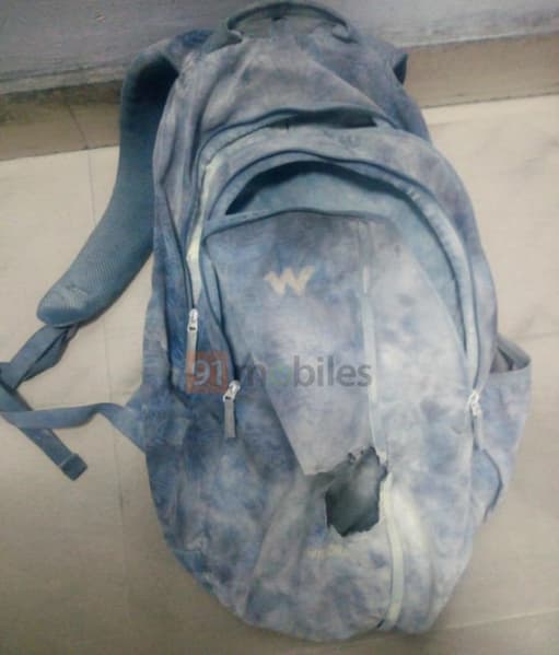 На фотографиях действительно видно, что смартфон буквально разорвало на куски, да и рюкзак изрядно пострадал.