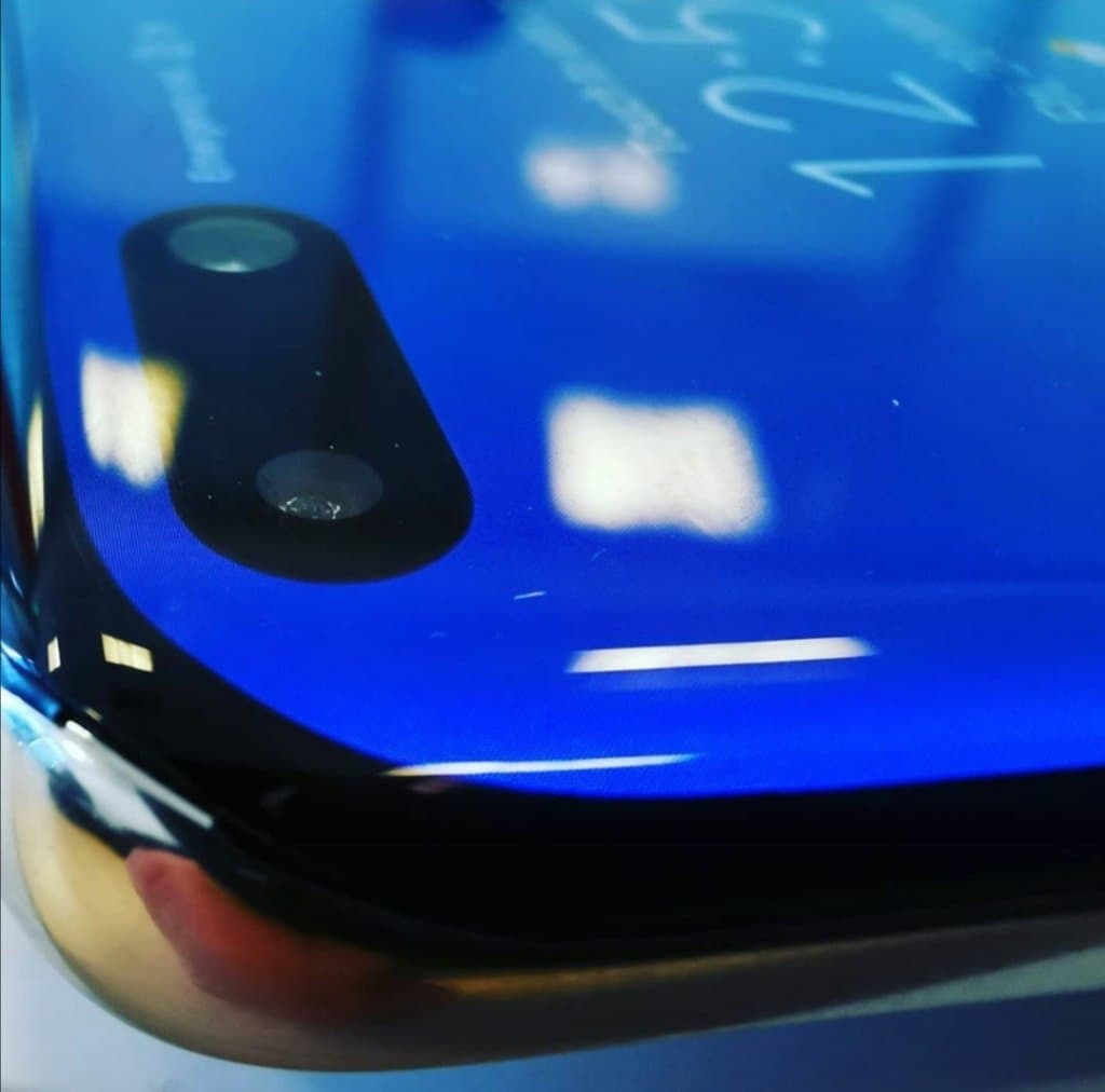 Фото поделился известный сетевой информатор RODENT950 на своей страничке в социальной сети Twitter. На снимке показана фронтальная камера на очень близком расстоянии и участок включенного экрана с закруглённой кромкой.