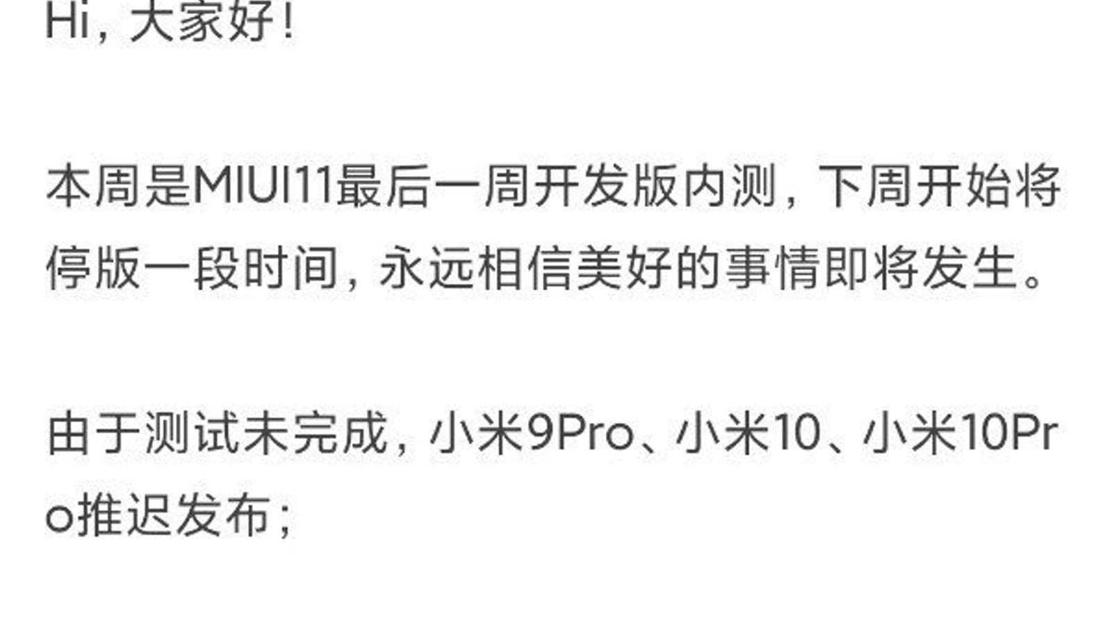 Как пишет источник, компания Xiaomi на тематическом форуме сообщила о прекращении работ над внутренней бета-версией прошивки MIUI 11 — они приостановятся в конце текущей недели. Чем продиктована пауза — не сообщается, но причин может быть несколько: первая — коронавирус, вторая — переброска ресурсов на работу с MIUI 12. Но какой бы ни была подоплека, все это скажется на сроках обновления прошивок: пострадают смартфоны (и пользователи) моделей Mi 9 Pro, Mi 10, Mi 10 Pro и Redmi Note 8.