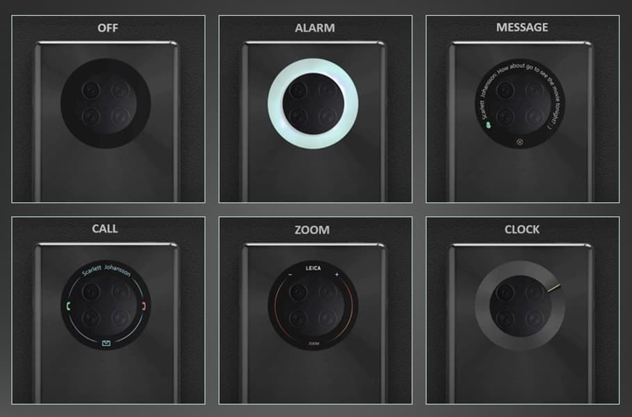 Как видим, дизайн в целом не изменился, но есть одно важное отличие. Дело в том, что круг, опоясывающий модуль камеры, представляет собой экран! Более того, этот экран сенсорный, то есть служит не только для отображения информации, но и для взаимодействия со смартфоном. На него могут выводиться элементы управления вызовом при входящем звонке, также могут выводить сообщения или элементы управления тем или иным ПО.