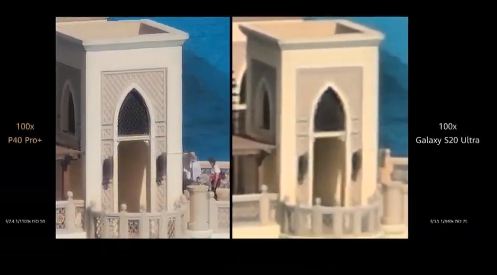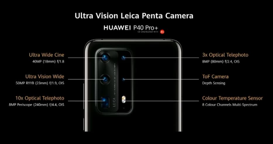 Huawei утверждает, что модель P40 получила лучший в классе «телевик» с разрешением 8 Мп, трёхкратным оптическим зумом, оптической стабилизацией и 80-миллиметровым (в эквиваленте) объективом. P40 Pro может похвастаться перископной телекамерой с датчиком RYYB разрешением 40 Мп, оптической стабилизацией, пятикратным оптическим и 50-кратным цифровым зумом.